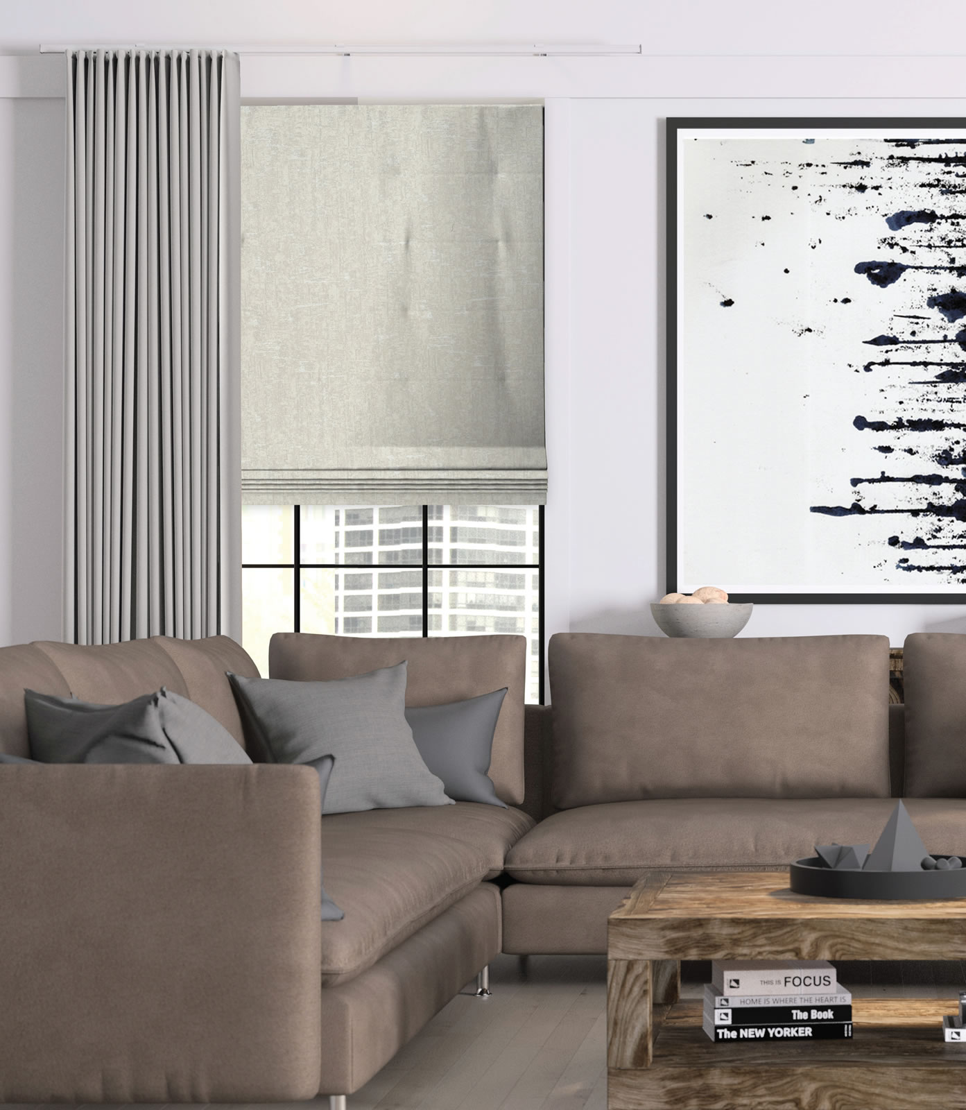 Redefine your living spaces with the Soft Wave Fold Drapery & Track System — the modern choice for continuous, flowing window coverage. Designed with 180% fullness and a precision snap-tape track system, these custom drapery panels glide smoothly across wide windows, delivering a minimalist, high-end look suited for contemporary homes, offices, and open-plan living areas.