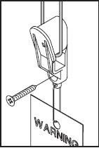 d. Holding the Tension Device upright, and in position, as shown, insert and secure the screw through the hole. The mounting screw must be secured into a solid surface or molly.
